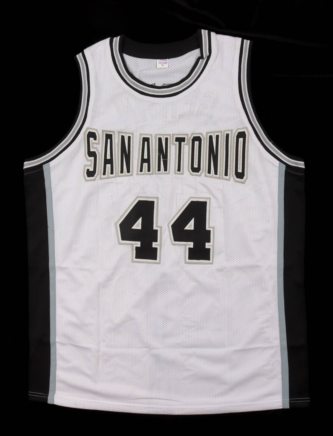 Custom jersey with everything sewn on, size XL. Hand-signed and inscribed by George Gervin (San Antonio Spurs, HOF).