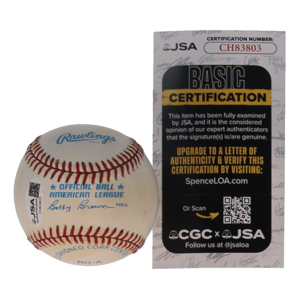 Rawlings Official American League Baseball. Hand-signed by Boog Powell (Baltimore Orioles). Please note, the baseball is naturally toning and stained.