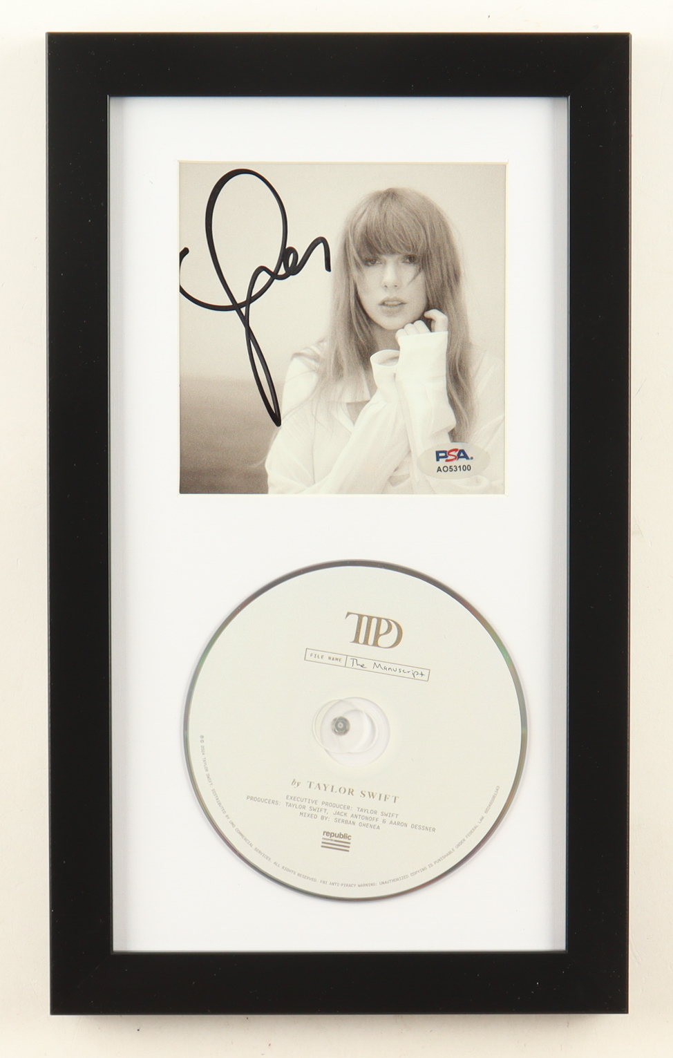 Custom frame measures approximately 8" x 13.5" in size. Features a "The Torture Poets Department" CD insert that has been hand-signed by Taylor Swift. The display also includes the disc as shown.