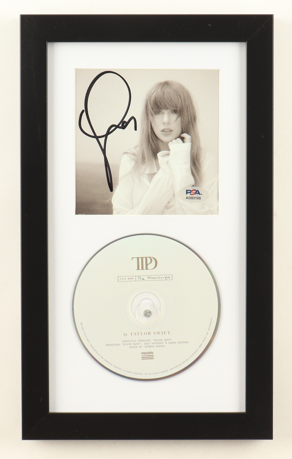 Custom frame measures approximately 8" x 13.5" in size. Features a "The Torture Poets Department" CD insert that has been hand-signed by Taylor Swift. The display also includes the disc as shown.