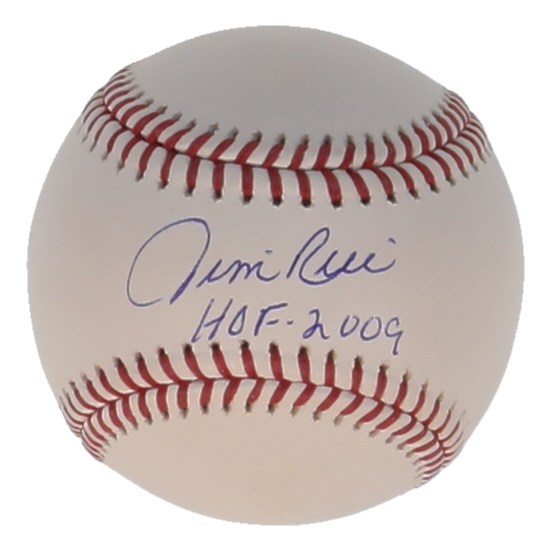 Rawlings Official Major League Baseball. Hand-signed and inscribed by Jim Rice (Boston Red Sox, HOF). Please note, there are minor stains throughout the baseball.