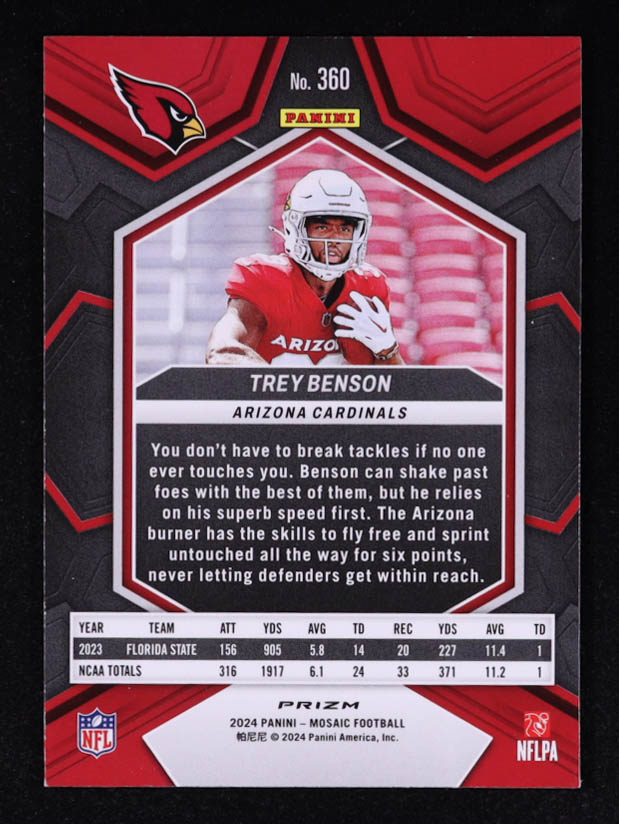 Trey Benson 2024 Panini Mosaic Mosaic Choice Red and Green #360 RC