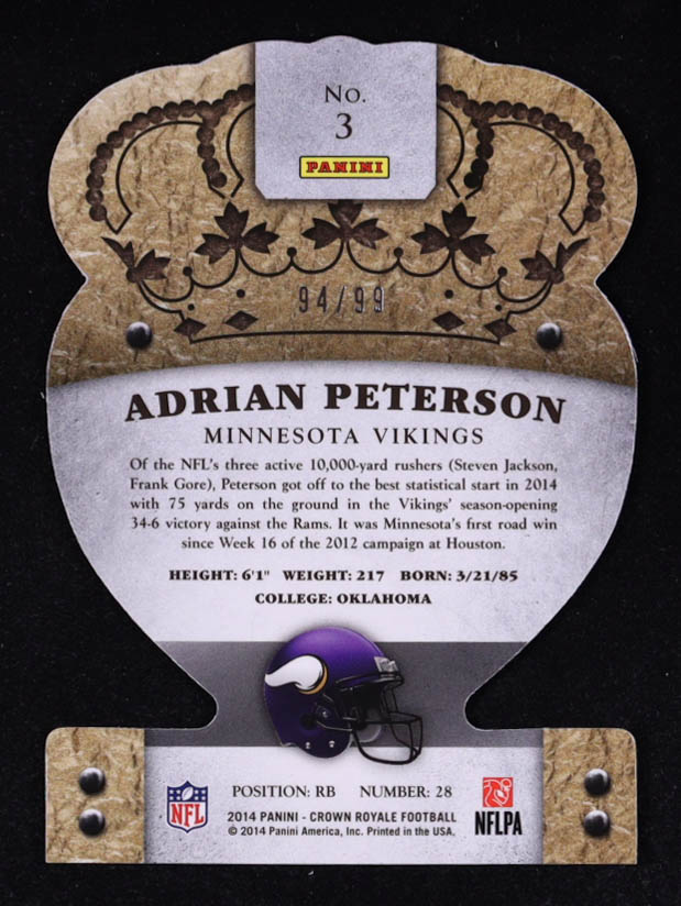 Adrian Peterson 2014 Crown Royale Gold #3 #94/99