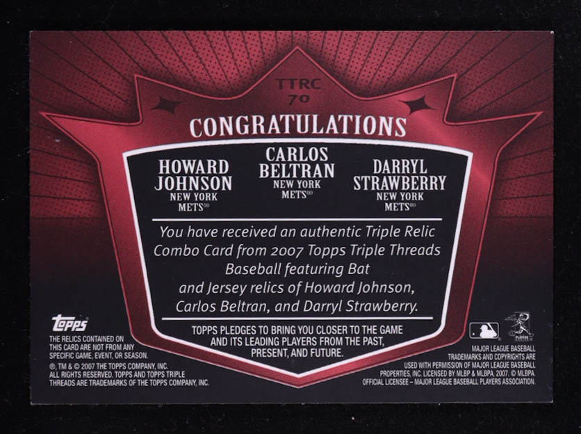 Darryl Strawberry / Carlos Beltran / Howard Johnson 2007 Topps Triple Threads Relics Combos #70 #16/36
