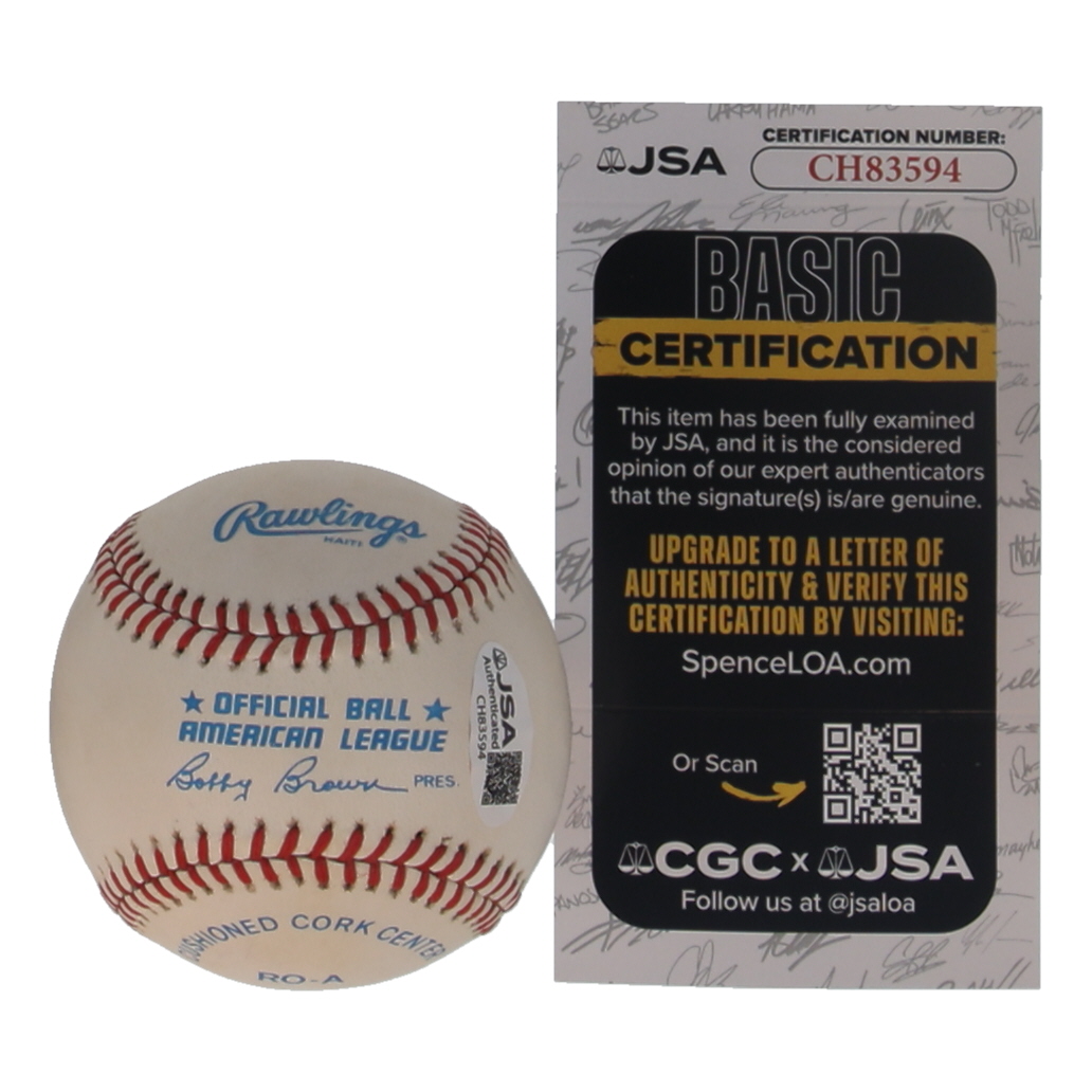 Rawlings Official American League Baseball. Hand-signed by Bobby Doerr (D. 2017, Boston Red Sox, HOF). Please note, there are stains throughout the baseball.