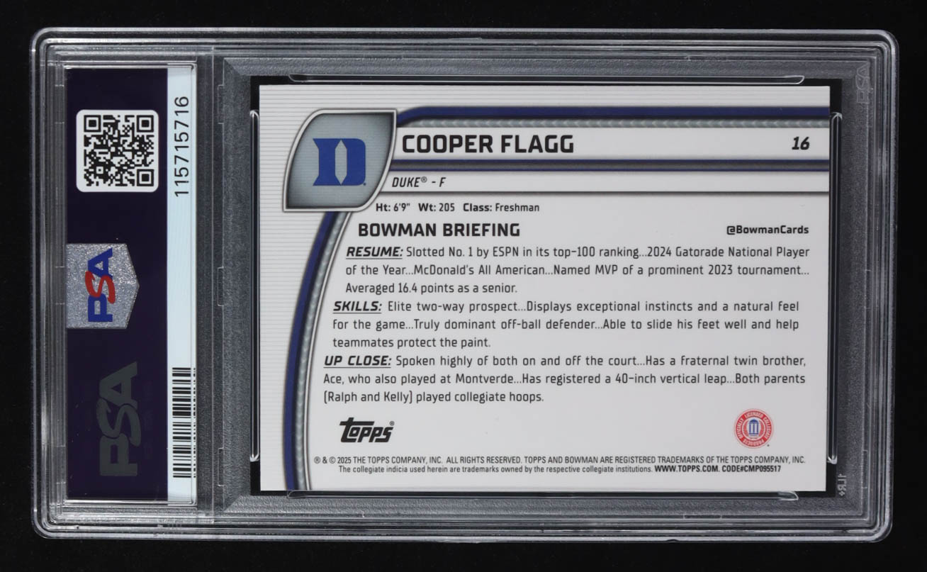 Cooper Flagg 2024-25 Bowman Chrome University #16 RC (PSA 10)