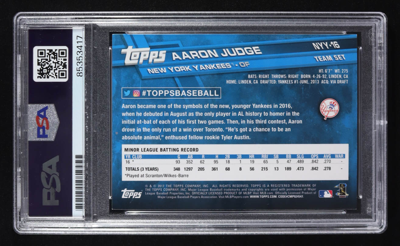 Aaron Judge Signed 2017 Topps #NYY-16 RC (PSA | Autograph Graded 10)
