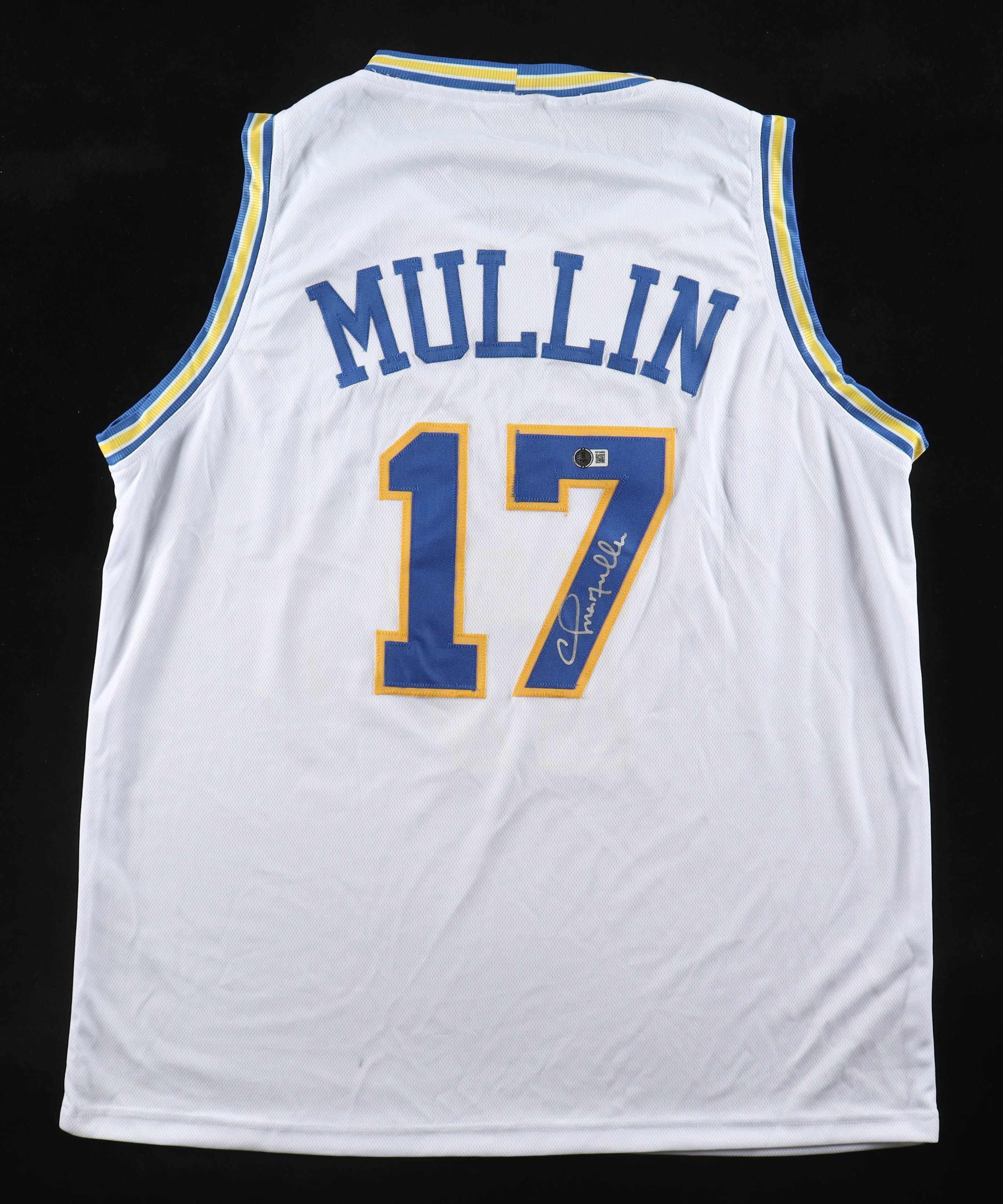 Custom jersey with everything sewn on, size XL. Hand-signed by Chris Mullin (HOF). Please note, there is staining on the back of the jersey.