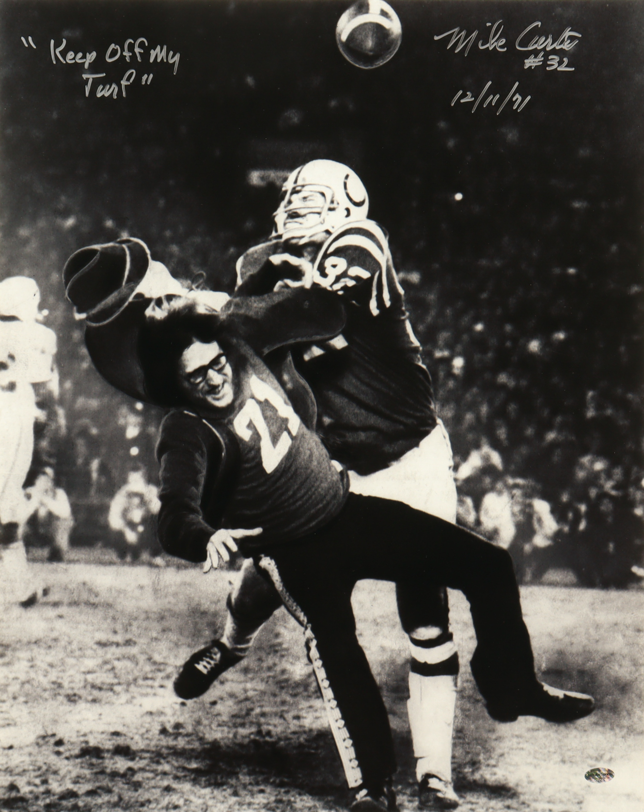 Photo measures 16" x 20" in size and has been hand-signed and inscribed by Mike Curtis (D. 2020, Indianapolis Colts).