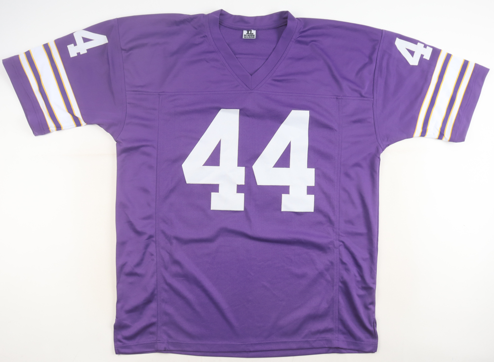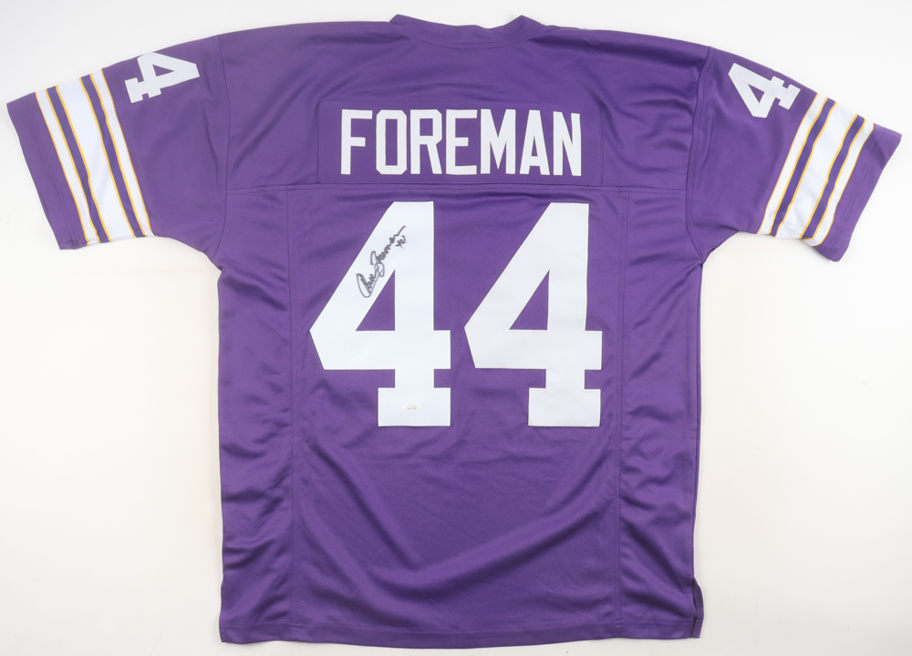 Custom jersey with everything sewn on, size XL. Hand-signed by Chuck Foreman (Minnesota Vikings).