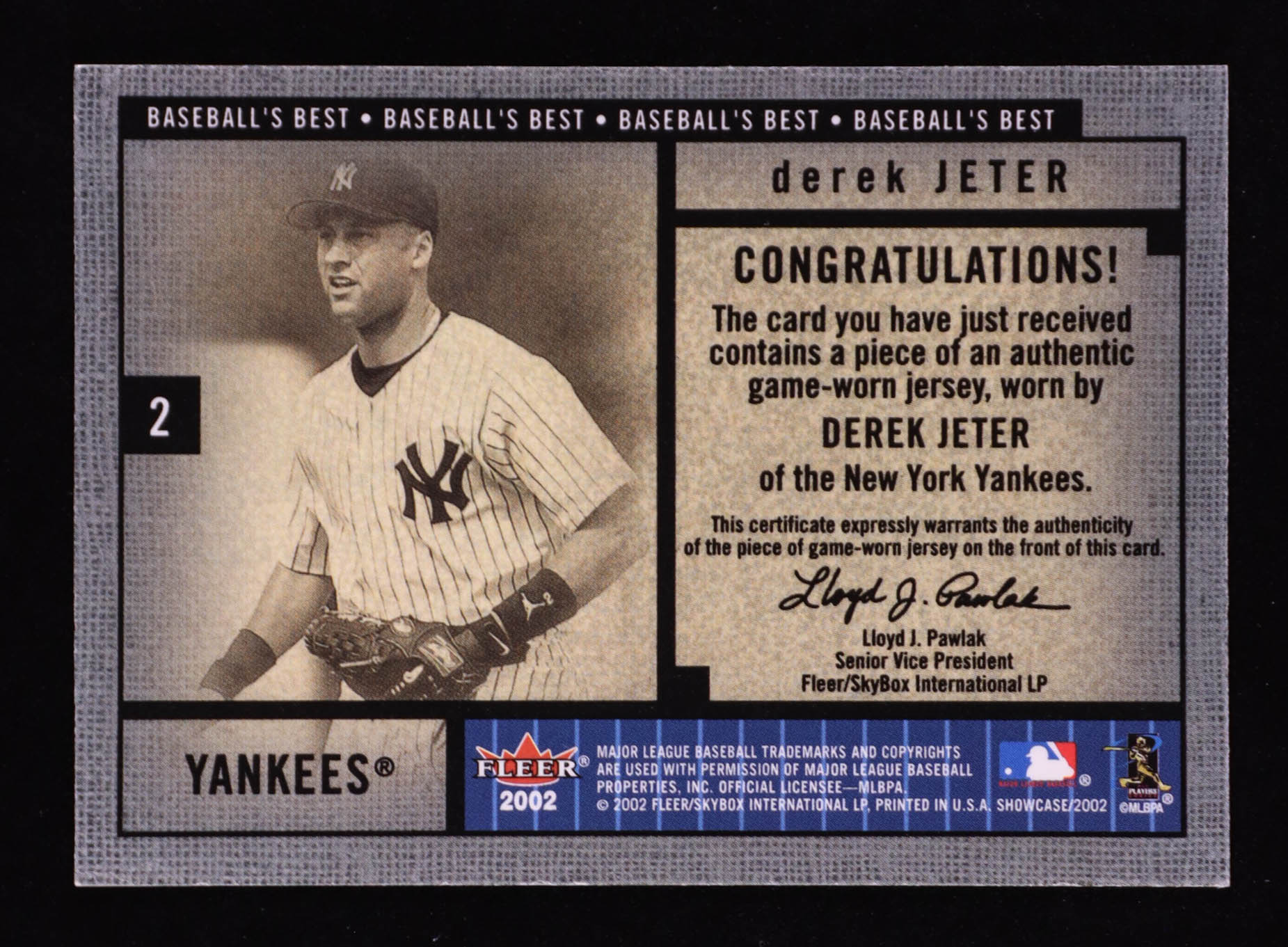 Derek Jeter 2002 Fleer Showcase Baseball's Best Memorabilia Jsy #1