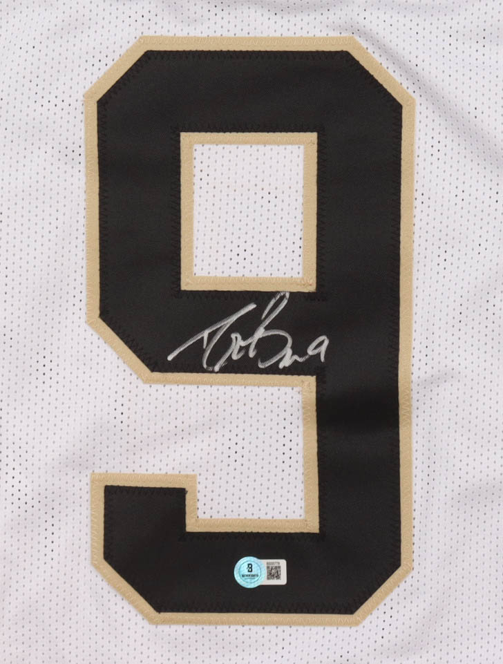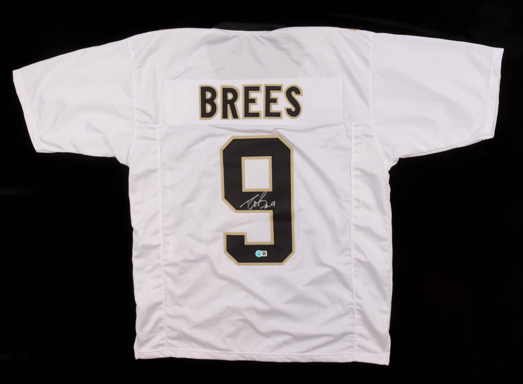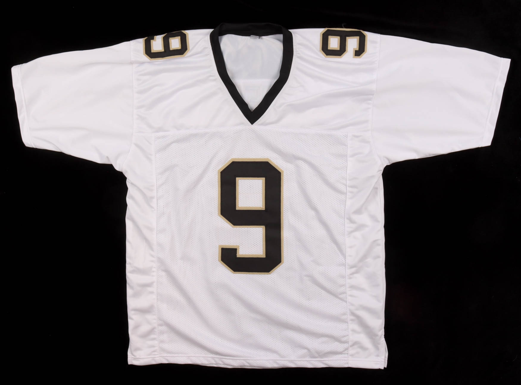Custom jersey with everything sewn on, size XL. Hand-signed by Drew Brees.