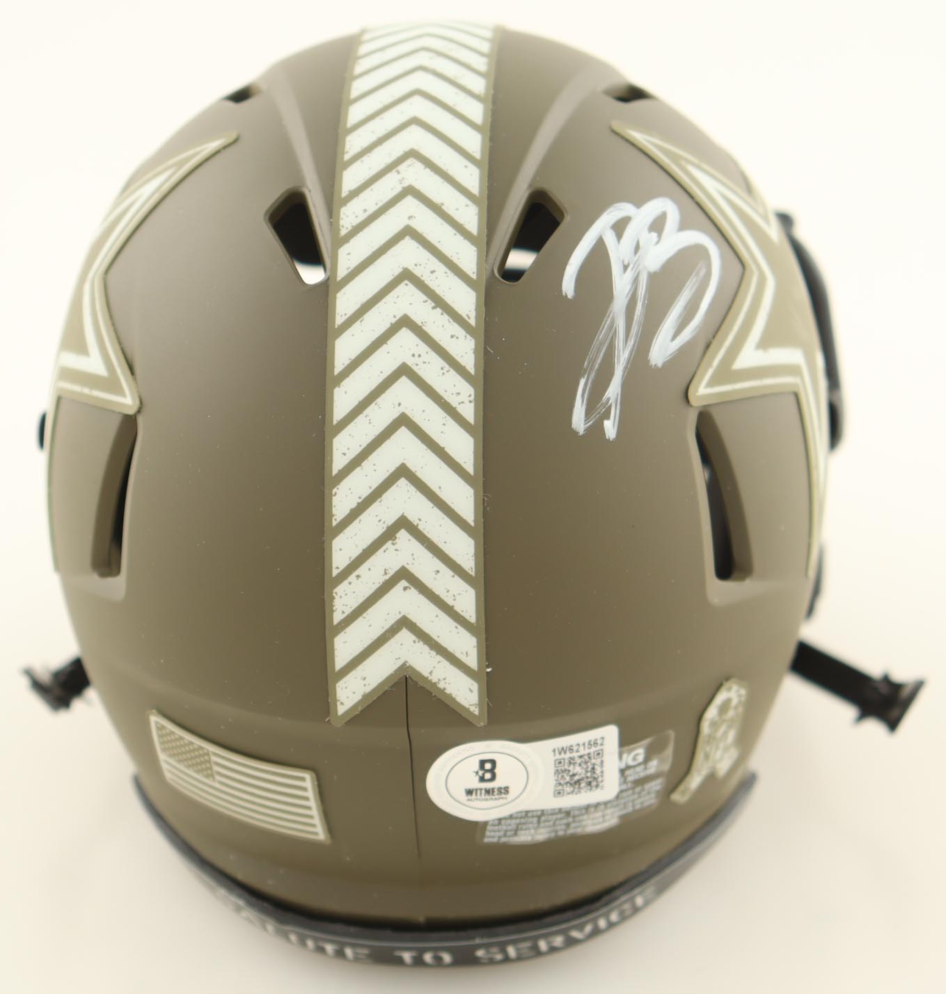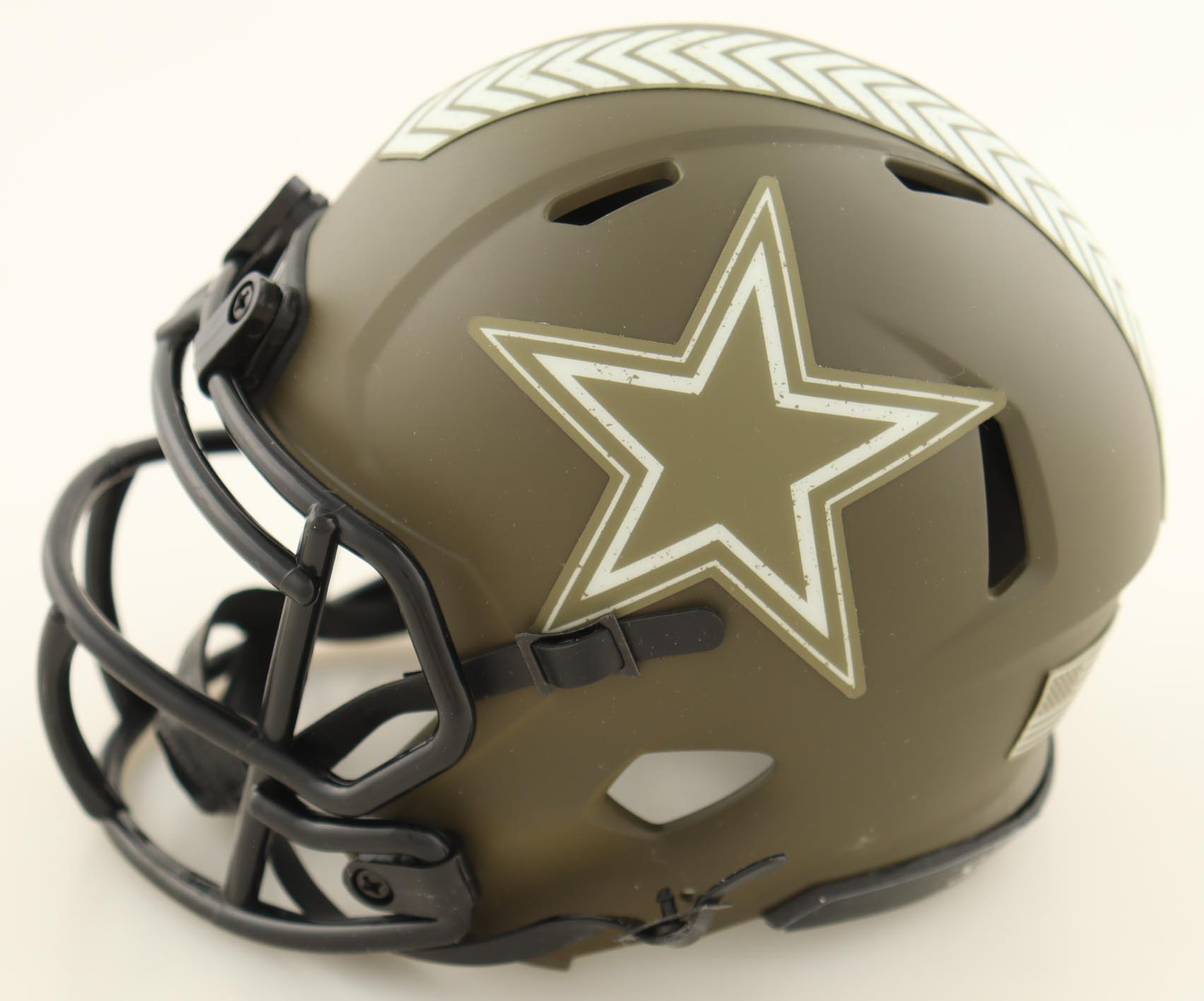 Riddell Dallas Cowboys Salute To Service Alternate Speed mini helmet. Hand-signed by Trevon Diggs and Daron Bland.