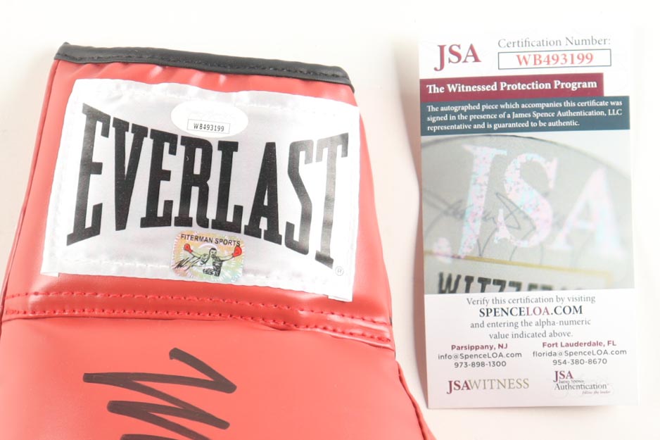 Everlast boxing glove has been hand-signed by Mike Tyson (HOF) and Evander Holyfield,