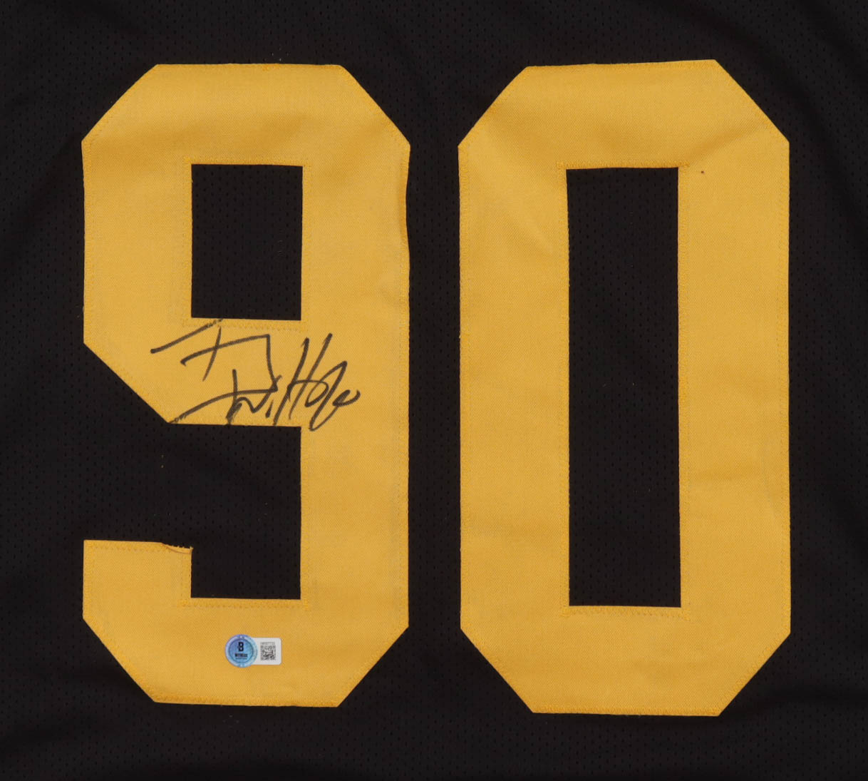 Custom jersey with everything sewn on, size XL. Hand-signed by T. J. Watt (Pittsburgh Steelers).