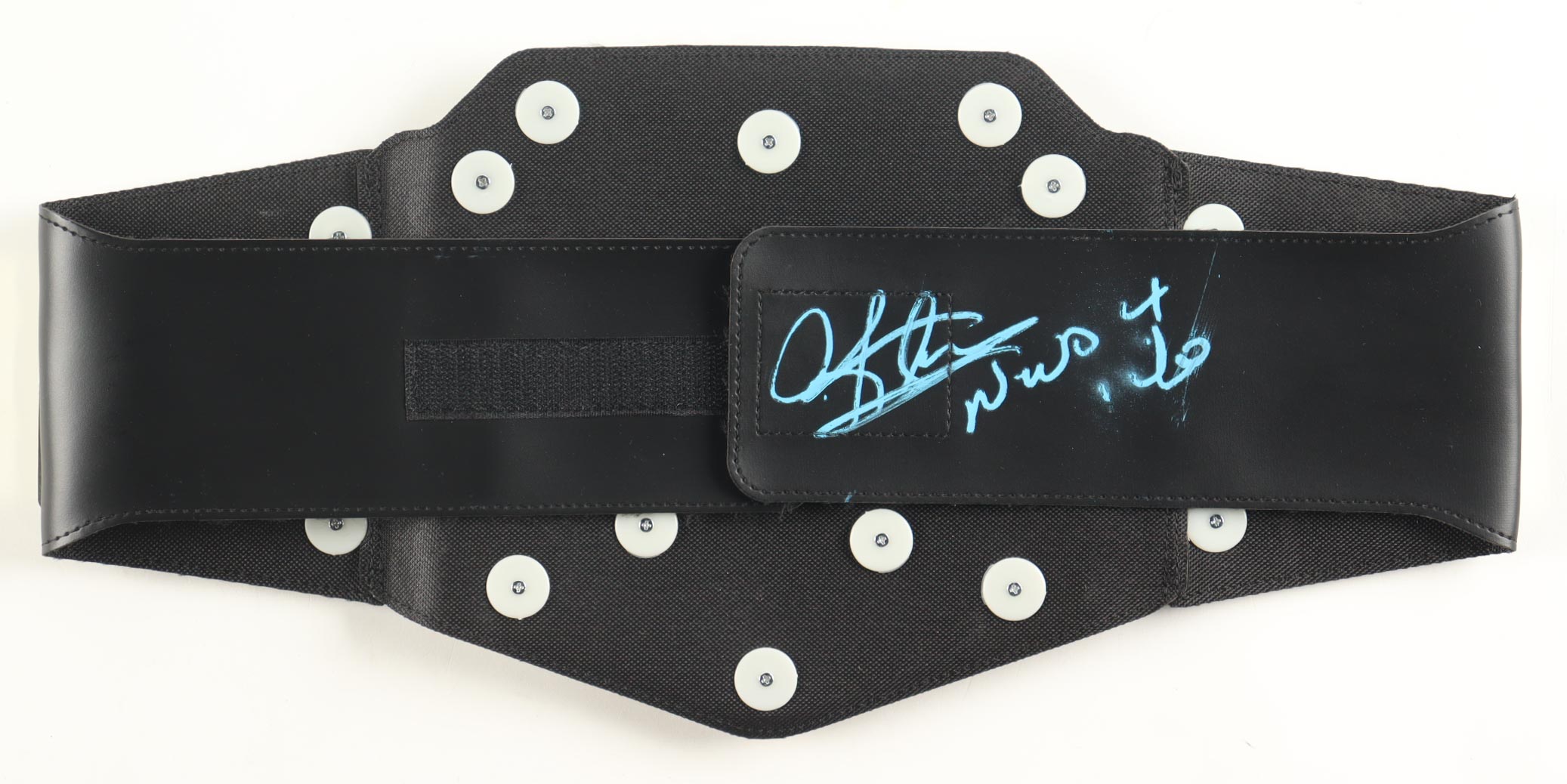 Replica WWE Championship Belt (plastic) measures 38" in size and is hand-signed and inscribed by Dennis Rodman (Chicago Bulls, HOF). Please note that the signature is slightly smudged.