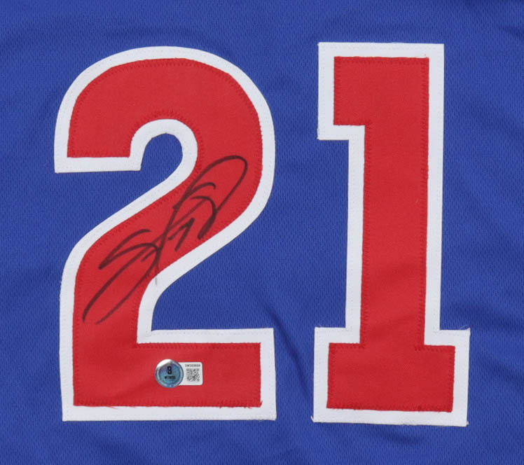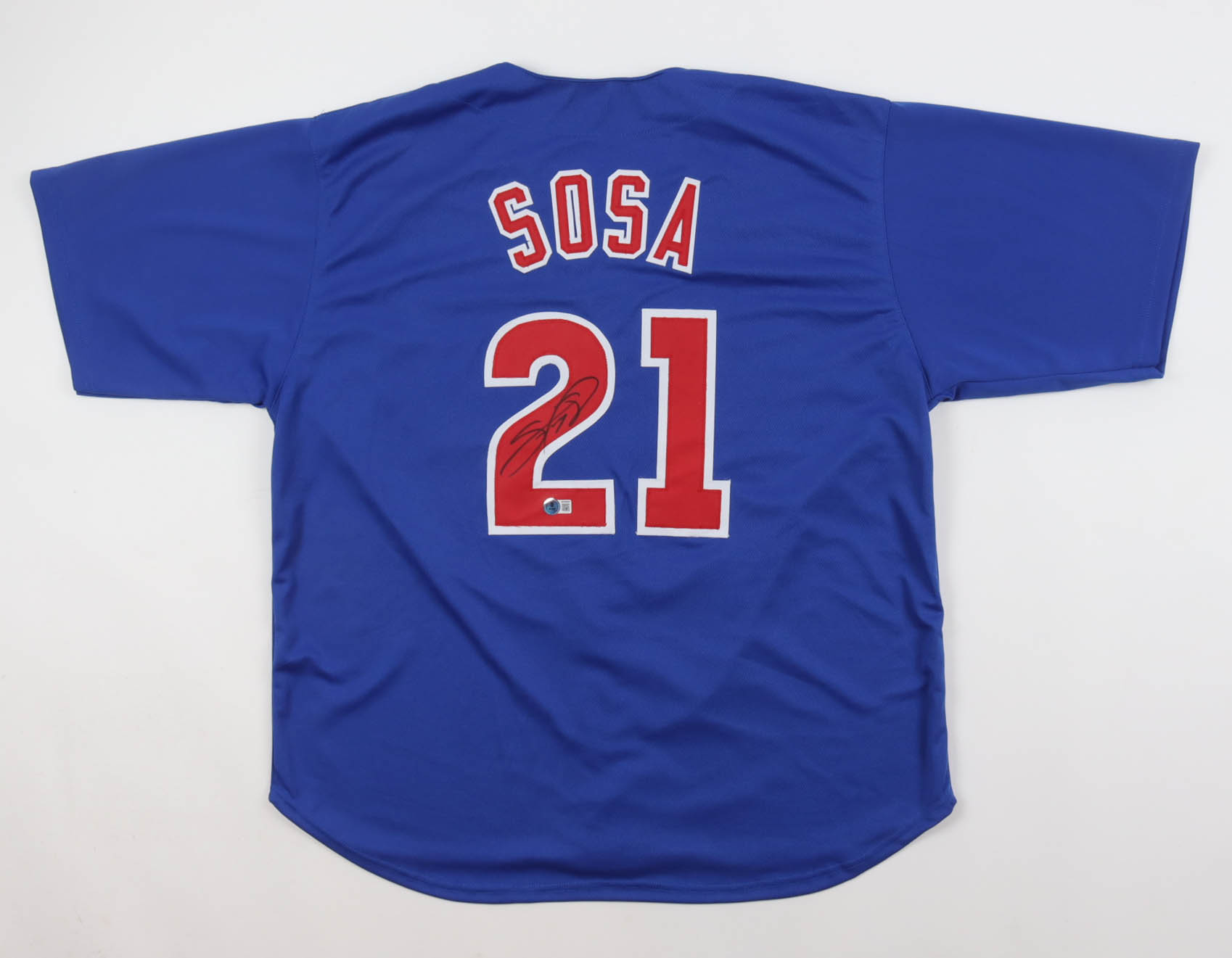 Custom jersey. Everything is sewn on, size XL. Hand-signed by Sammy Sosa.