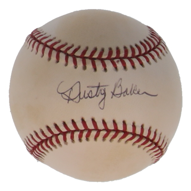 Rawlings Official National League Baseball. Hand-signed by Dusty Baker (San Francisco Giants). Please note, the baseball is naturally toning and stained.
