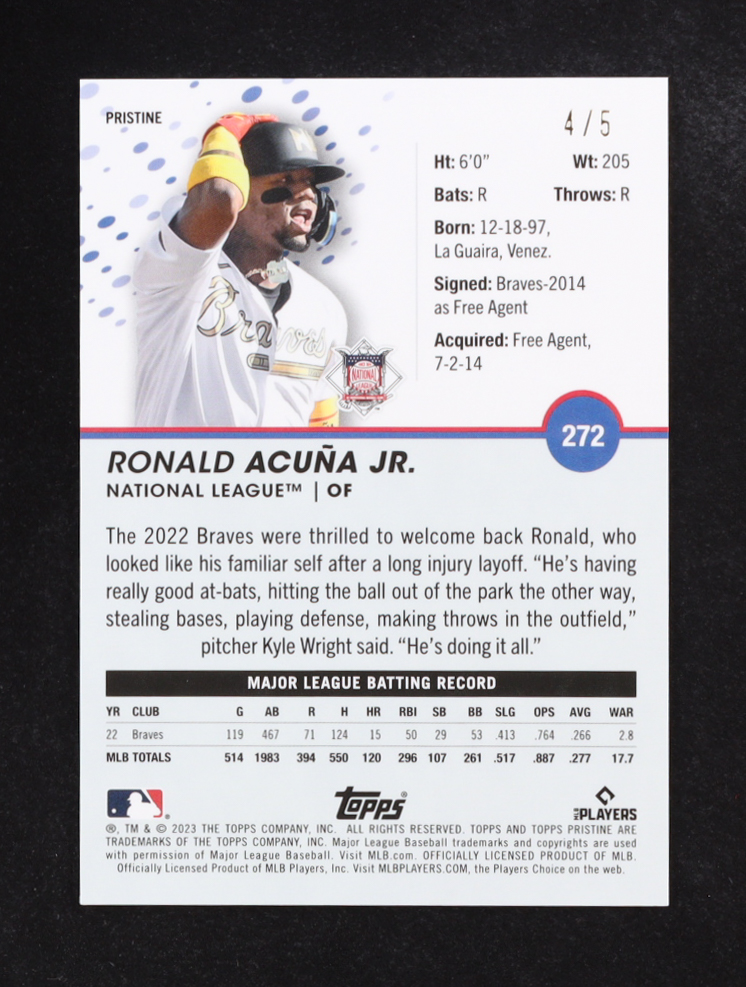 Ronald Acuna Jr. 2023 Topps Pristine Red Pristine Refractors #272 #4/5