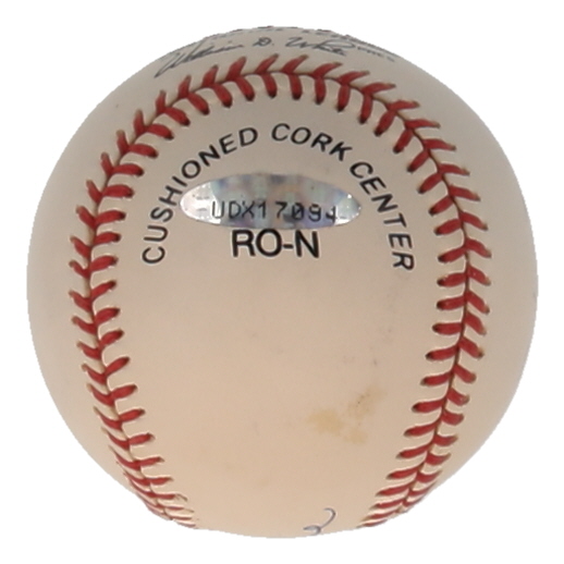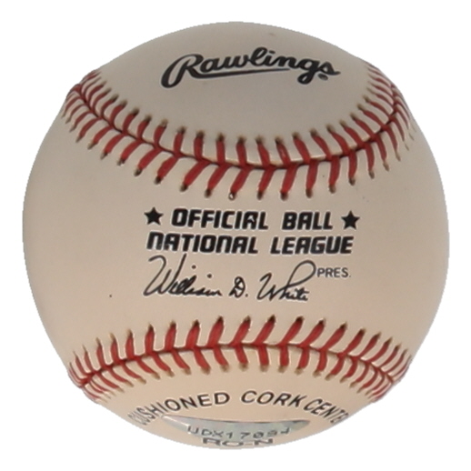 Rawlings Official National League Baseball. Hand-signed by Tom Glavine (Atlanta Braves, HOF). Please note, the baseball is naturally toning and stained.