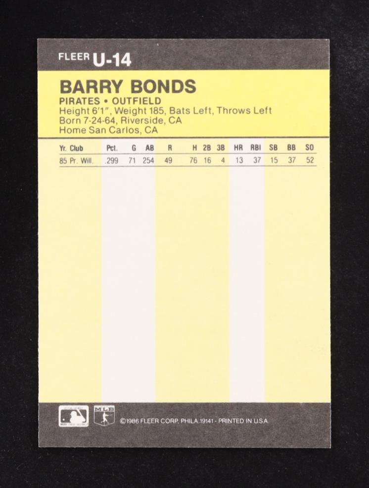 Barry Bonds 1986 Fleer Update #U14 XRC