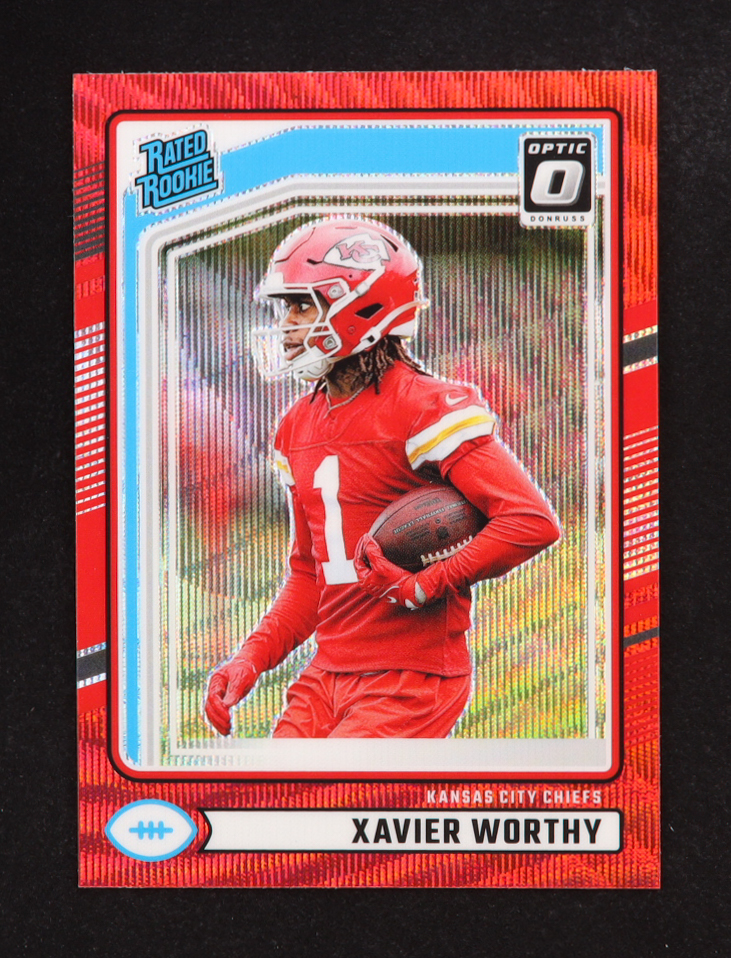 Xavier Worthy 2024 Donruss Optic Rated Rookies Preview Red Wave #398 RC