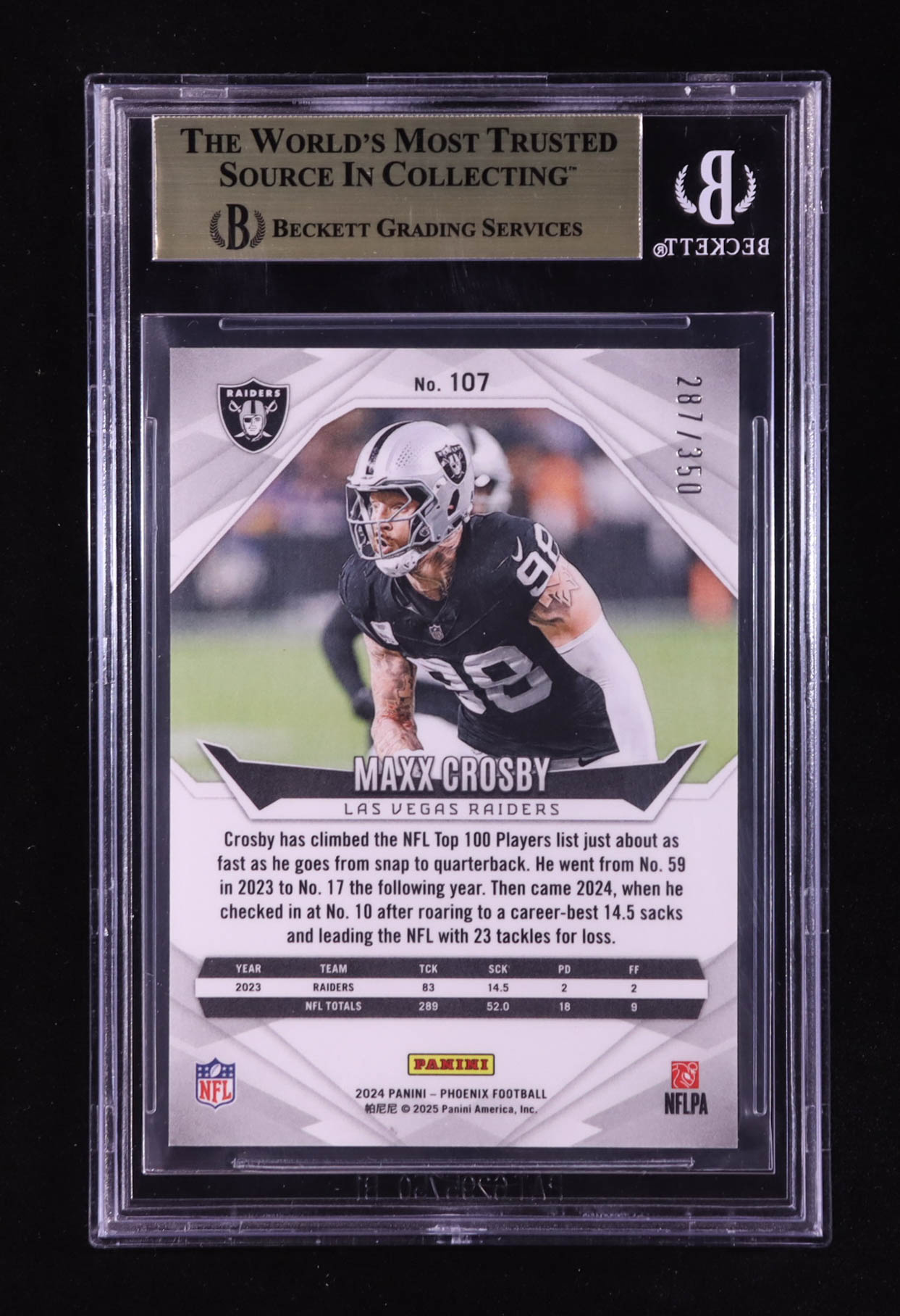 Maxx Crosby 2024 Panini Phoenix Fire Burst #107 #287/350 (BGS 9.5)