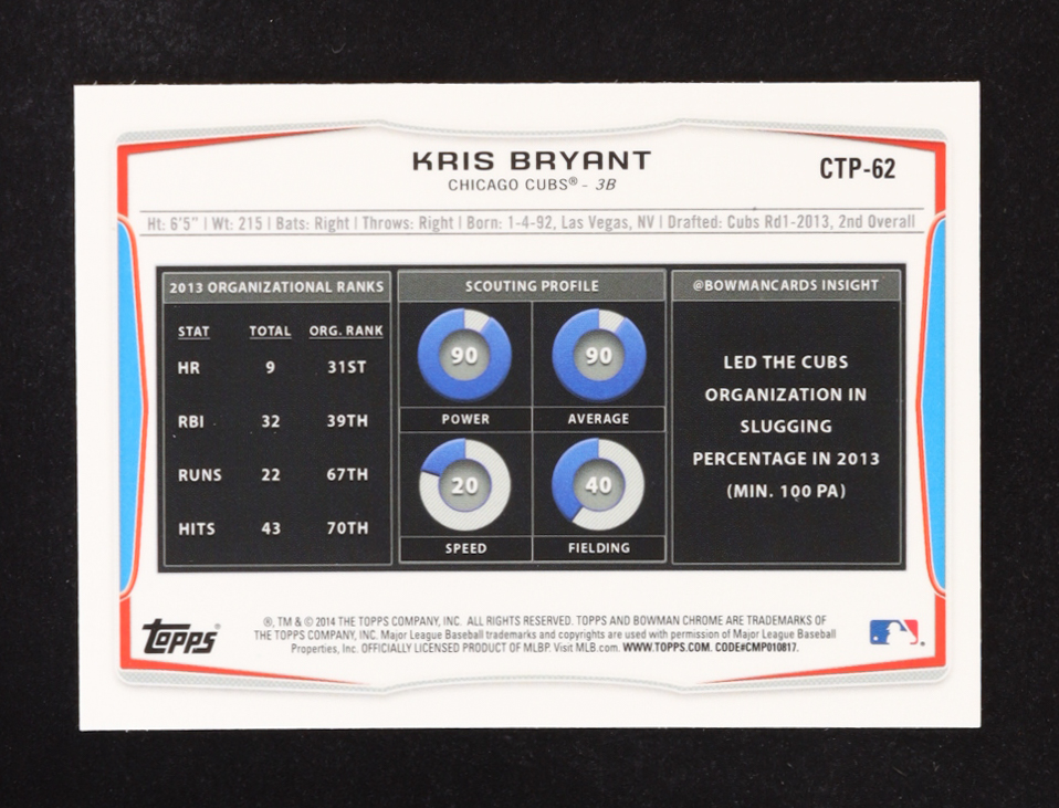 Kris Bryant 2014 Bowman Chrome Draft Top Prospects #CTP62 RC