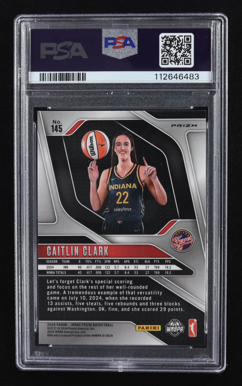 Caitlin Clark 2024 Panini Prizm WNBA Prizms Blue Velocity #145 RC (PSA 10)