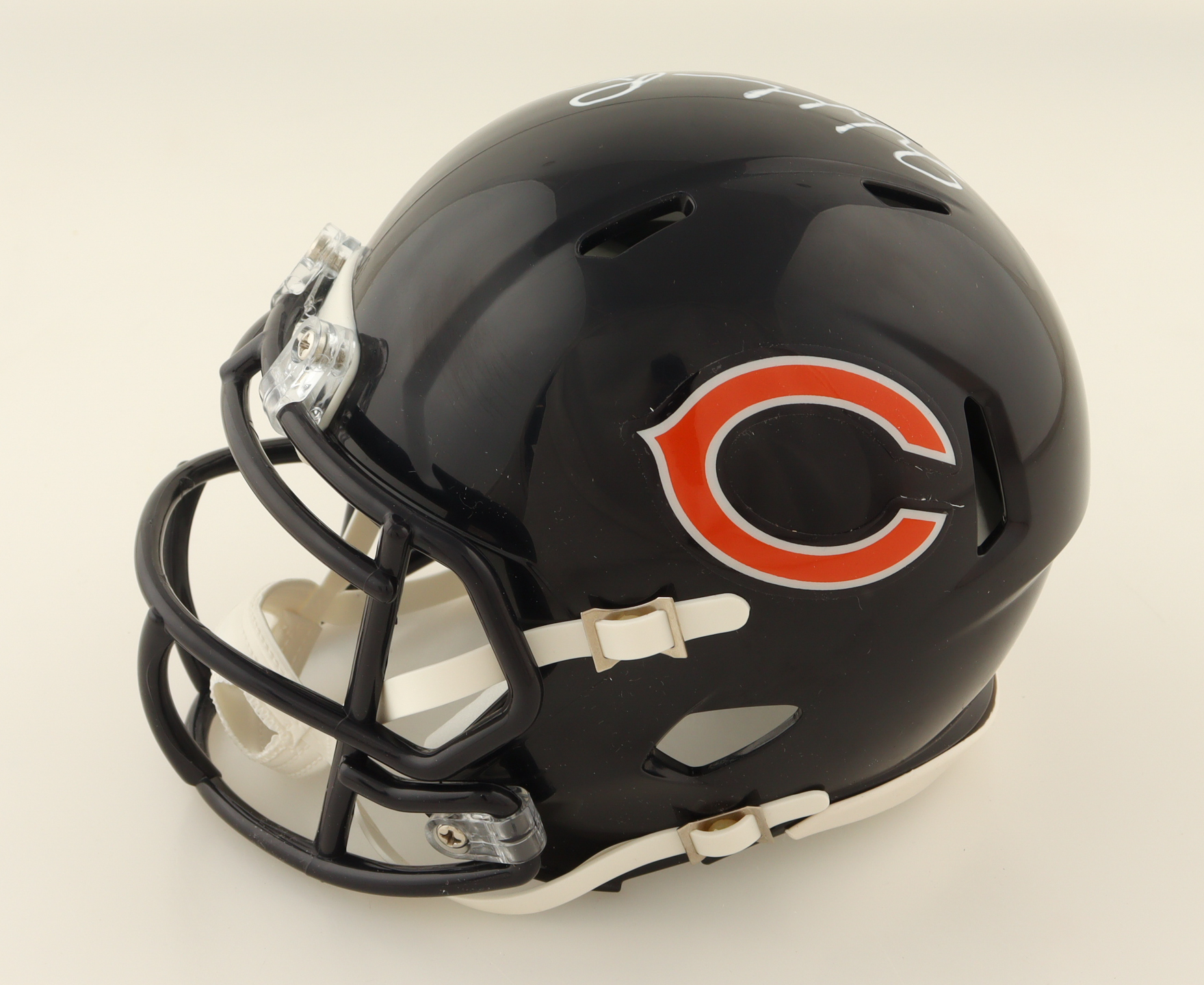 Riddell Chicago Bears Speed Mini helmet. Hand-signed and inscribed by Mike Singletary (Chicago Bears, HOF) and William Perry (Chicago Bears).