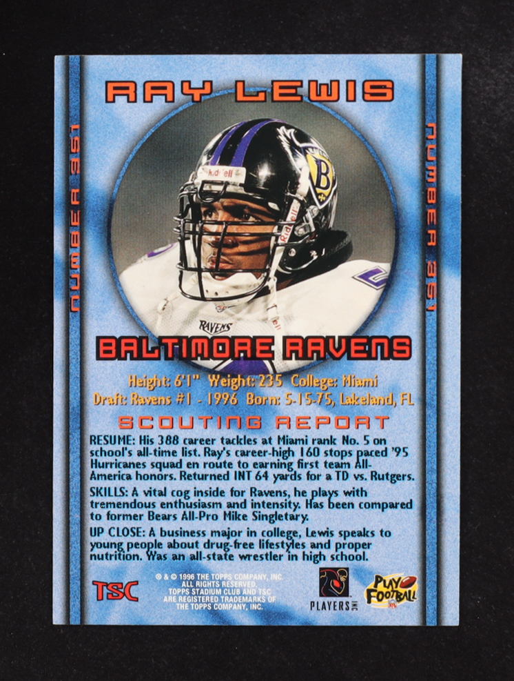 Ray Lewis 1996 Stadium Club #351 SP RC