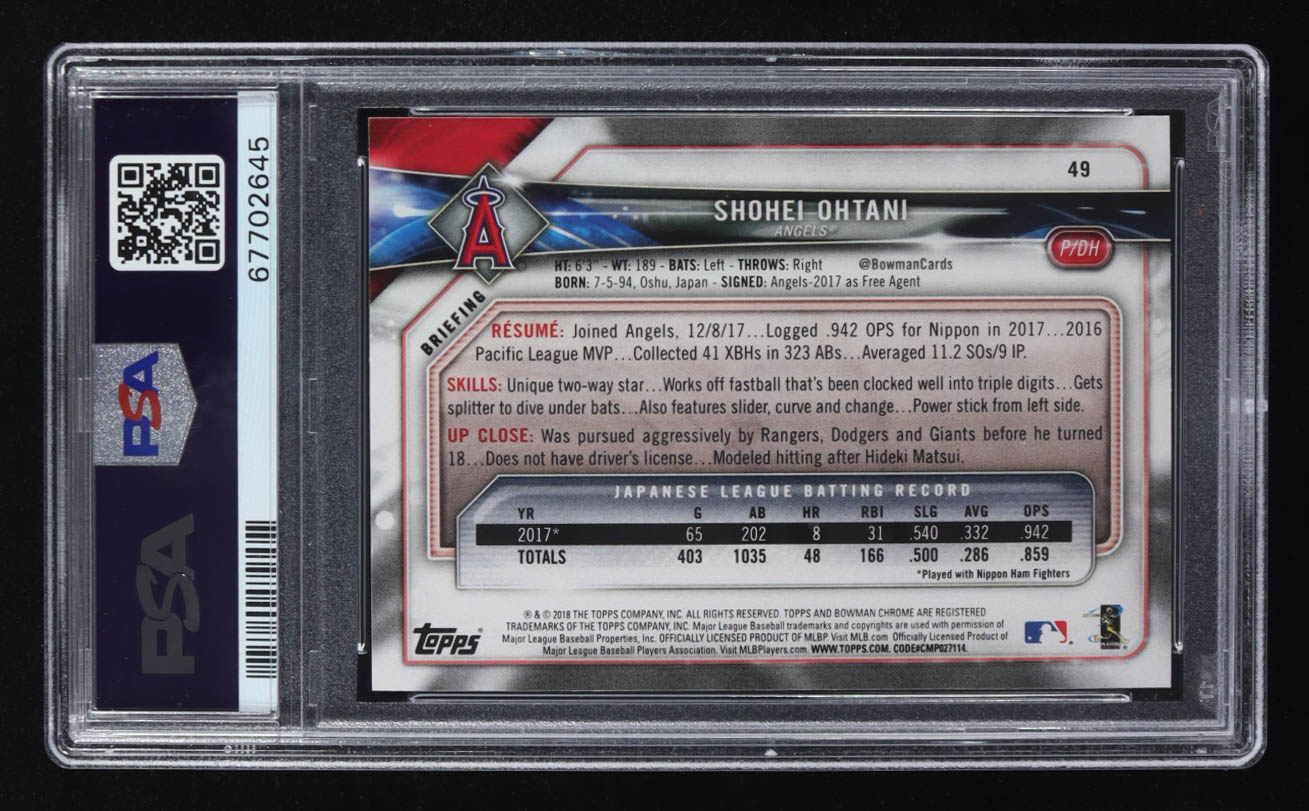 Shohei Ohtani 2018 Bowman #49 RC (PSA 9)