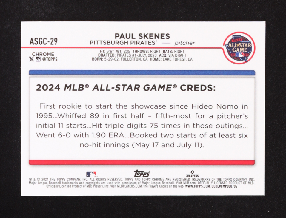 Paul Skenes 2024 Topps Chrome Update '24 All-Star Game #ASGC29 RC