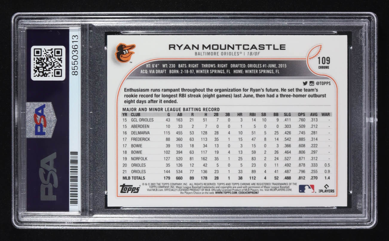 Ryan Mountcastle Signed 2022 Topps Chrome Pink #109 (PSA)
