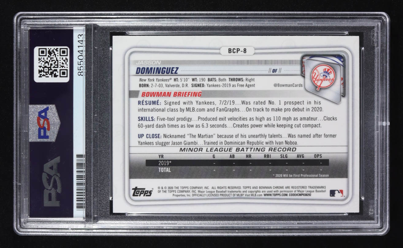 Jasson Dominguez Signed 2020 Topps Bowman 1st Chrome #BCP-8 RC (PSA | Autograph Graded 10)