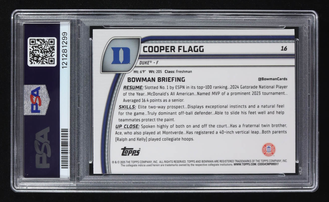 Cooper Flagg 2024-25 Bowman Chrome Sapphire University #16 RC (PSA 9)