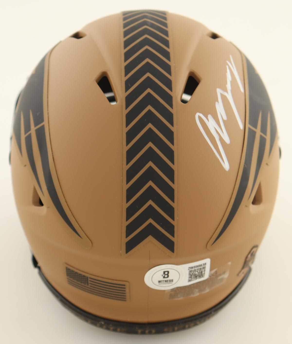 Christian Gonzalez Signed Patriots Salute To Service Speed Mini Helmet (Beckett)