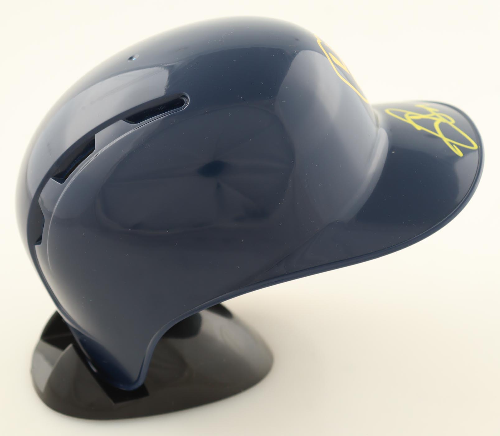 Rawlings Milwaukee Brewers mini batting helmet. Hand-signed by Jackson Chourio.