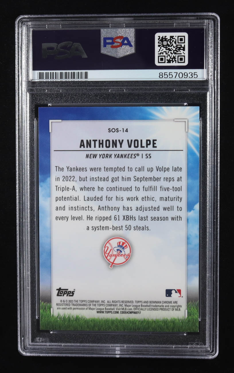 Anthony Volpe Signed 2023 Bowman Topps Chrome Trading Card Sights On September #SOS-14 RC (PSA | Autograph Graded PSA Authentic)