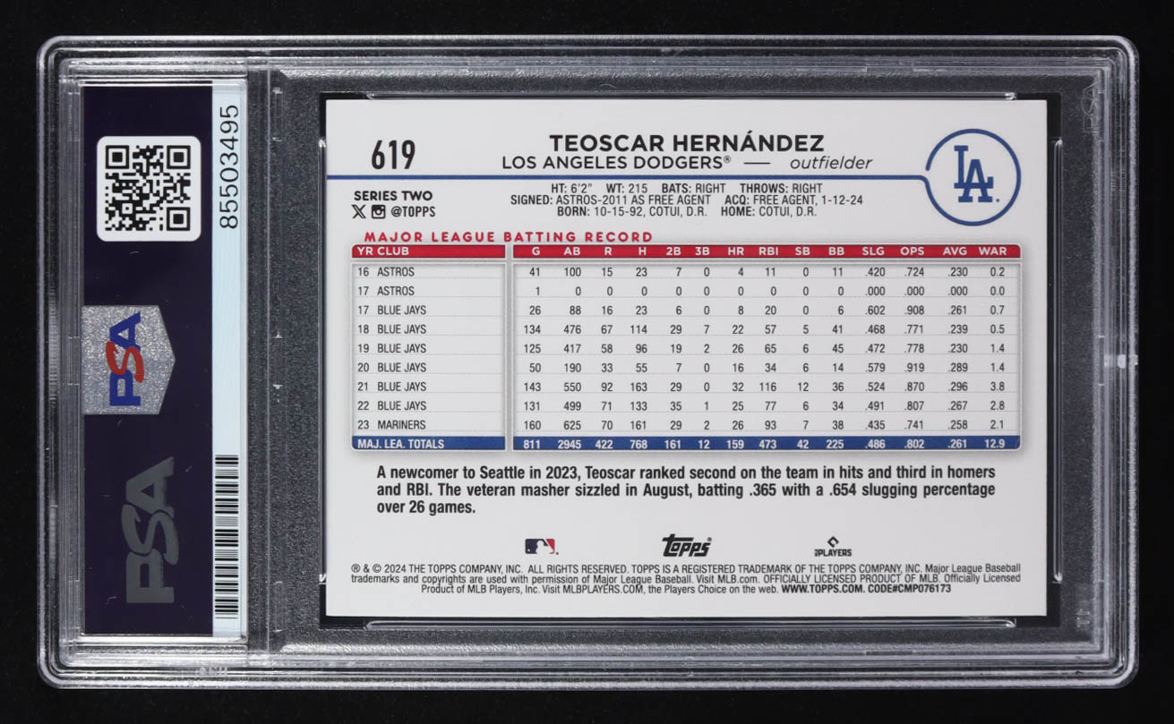 Teoscar Hernandez Signed 2024 Topps Chrome Trading Card #619 (PSA | Autograph Graded PSA Authentic)