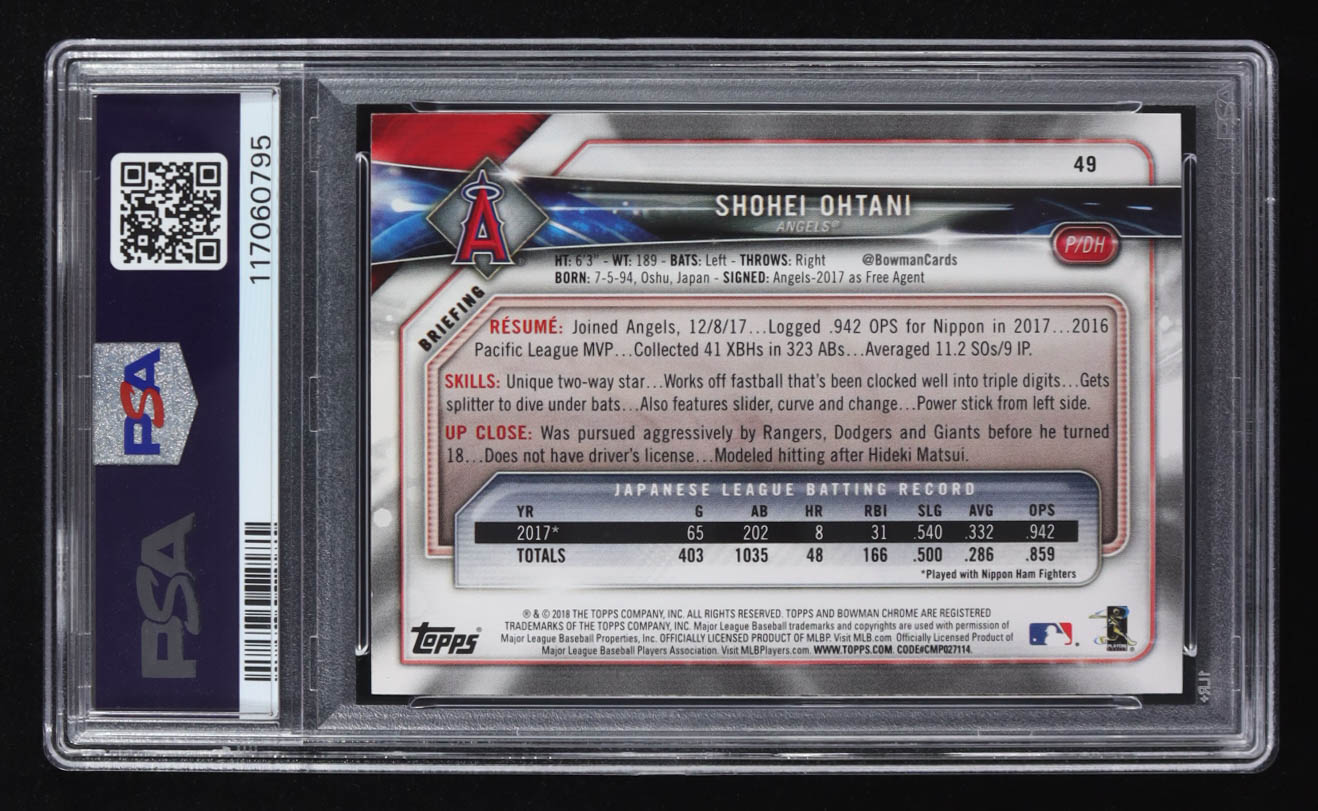 Shohei Ohtani 2018 Bowman #49 RC (PSA 10)