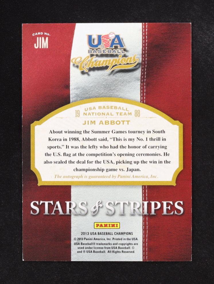 Jim Abbott 2013 USA Baseball Champions Stars and Stripes Signatures #29 #279/425