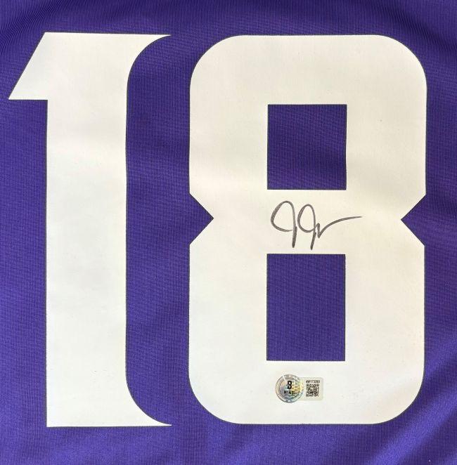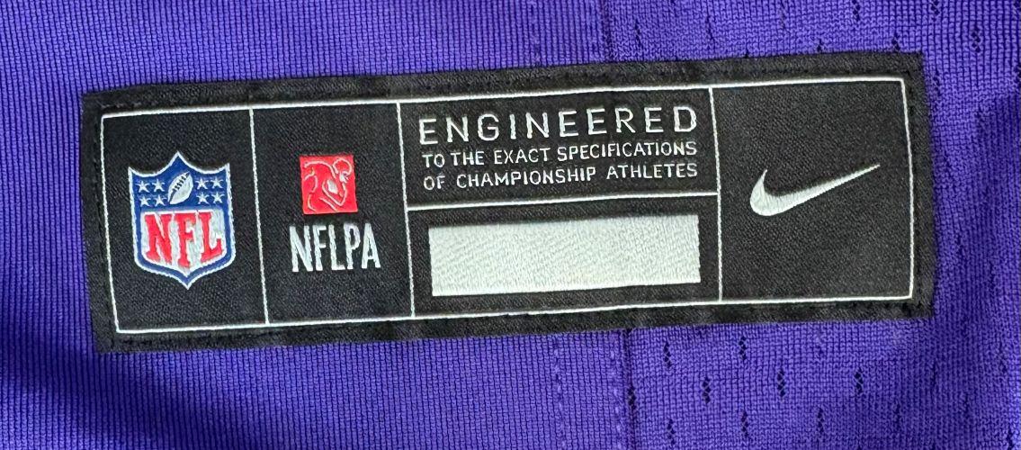 Nike jersey with everything pressed on, size L. Hand-signed by Justin Jefferson (Minnesota Vikings).