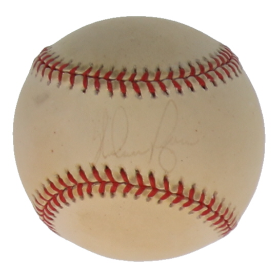 Rawlings Official National League Baseball. Hand-signed by Nolan Ryan (Houston Astros, HOF). Please note, the signature is faded and the baseball is naturally toned.