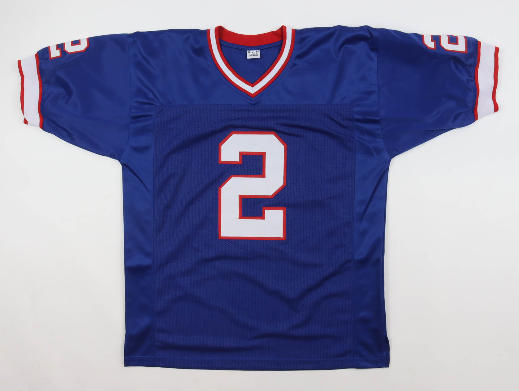 Custom jersey. Everything sewn on, size XL. Hand-signed by Steve Christie.