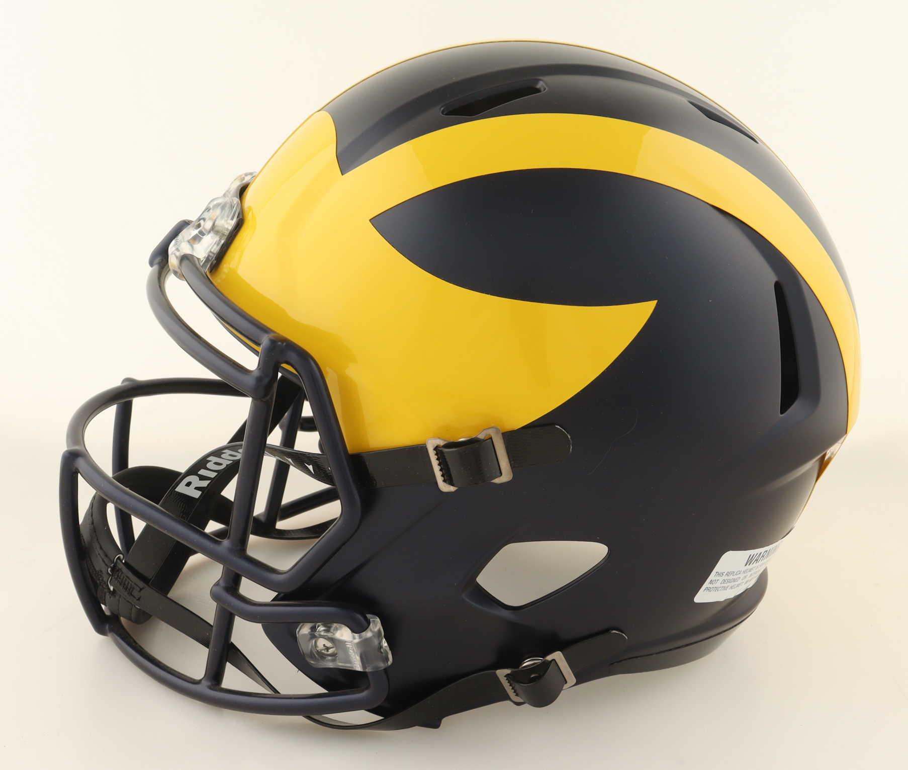 Riddell Michigan Wolverines Full-Size Replica Speed Helmet. Hand-signed by Aidan Hutchinson.