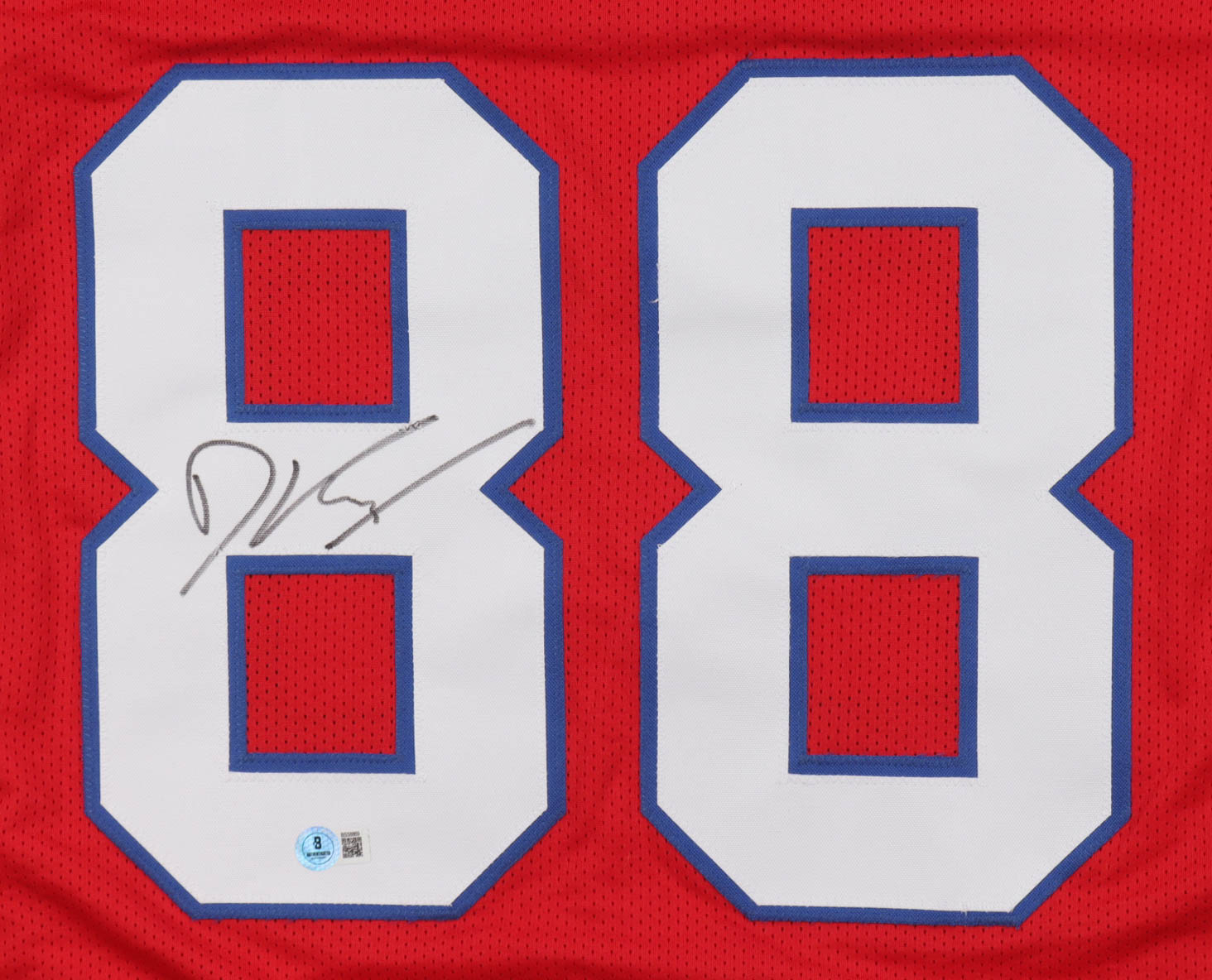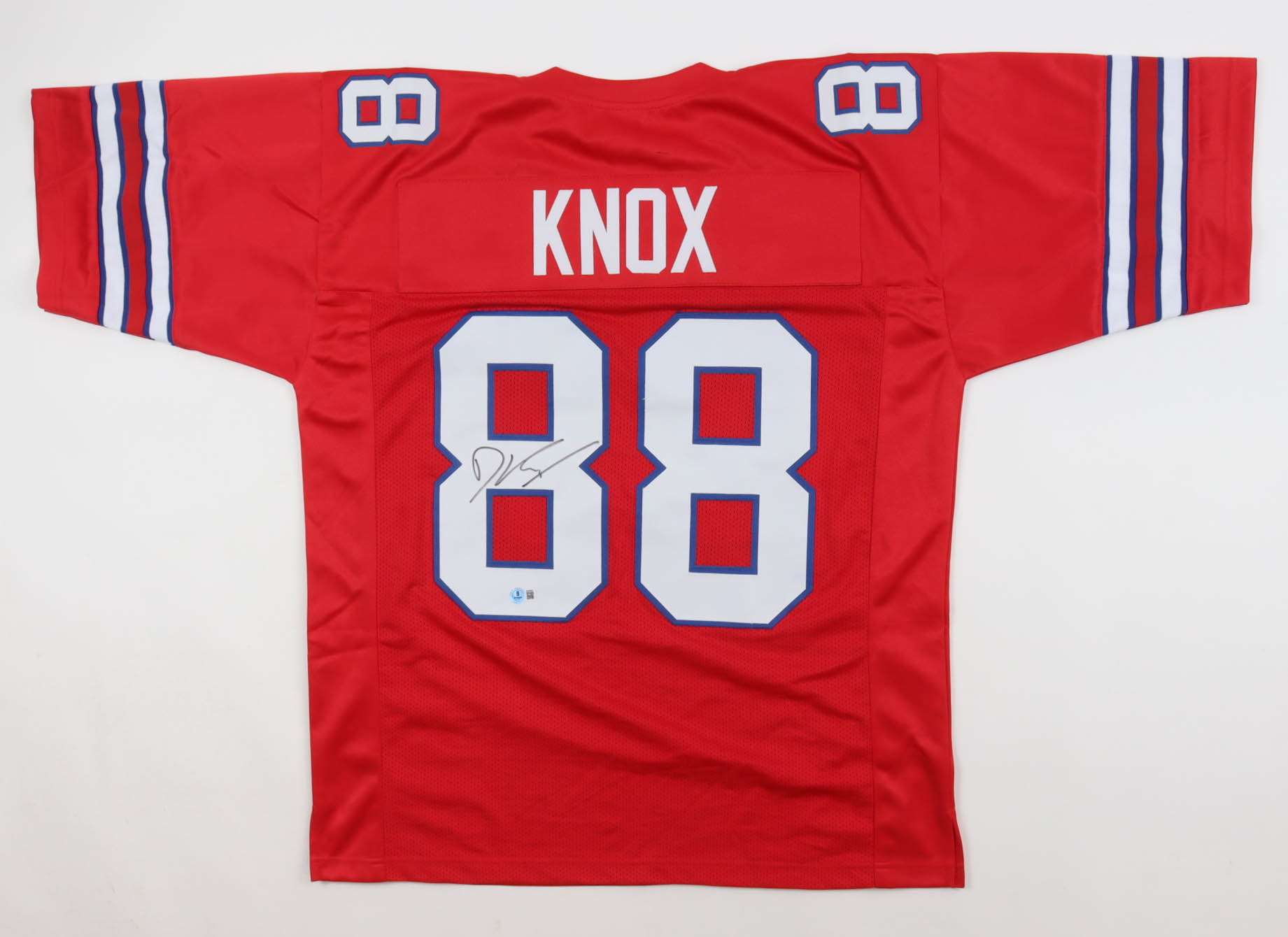 Custom jersey with everything sewn on, size XL. Hand-signed by Dawson Knox.