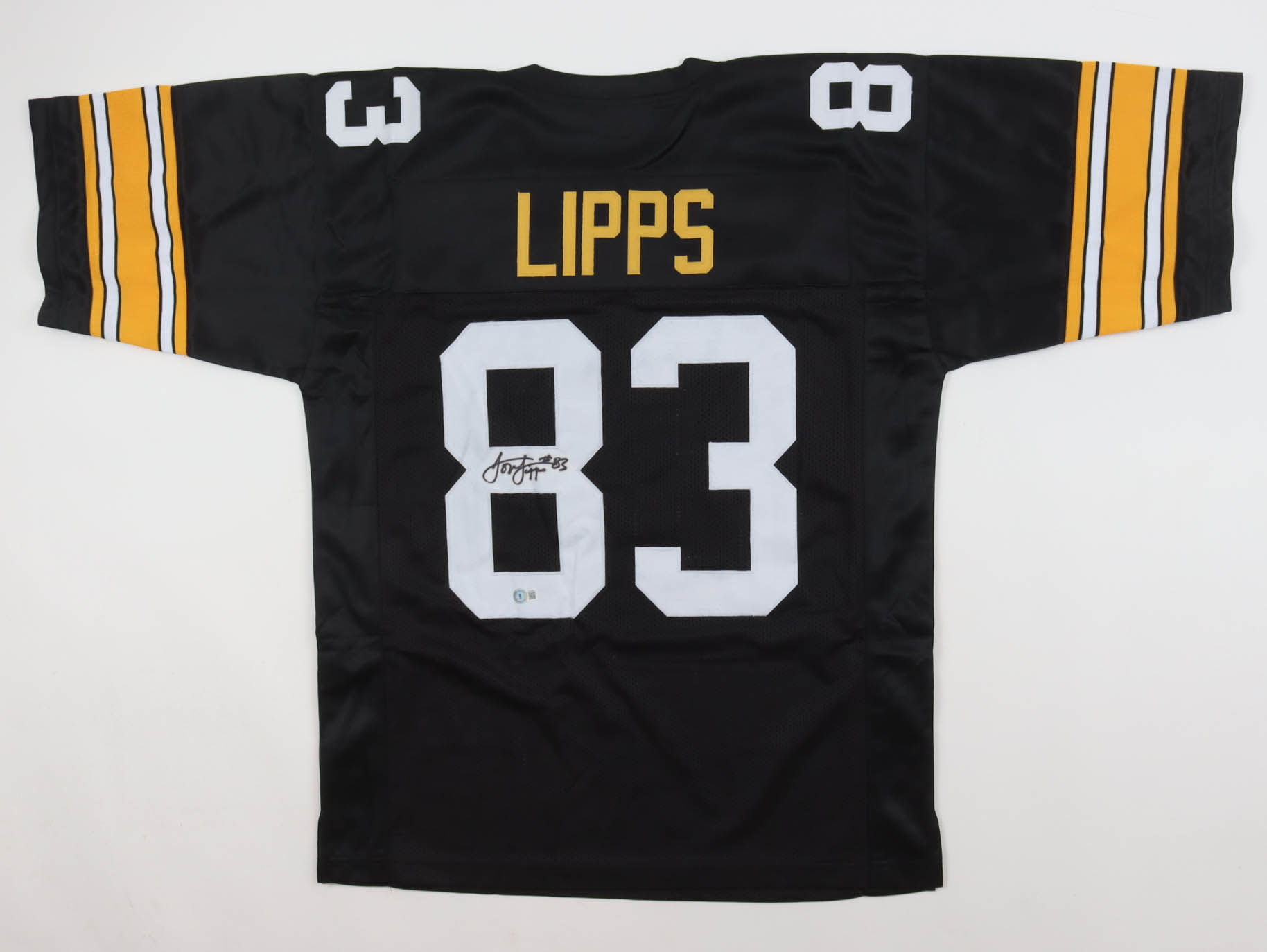 Custom jersey with everything sewn on, size XL. Hand-signed by Louis Lipps. Please note, glue is visible through the reverse number. See photos regarding the condition of the item.