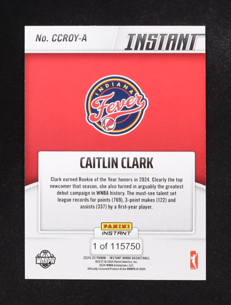 Caitlin Clark 2024 Panini Instant WNBA Caitlin Clark Rookie of the Year #CCROYA RC