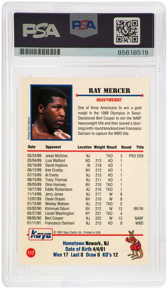 Ray Mercer Signed 1991 Kayo #117 Inscribed "36-7-1, 26 KO's" (PSA)
